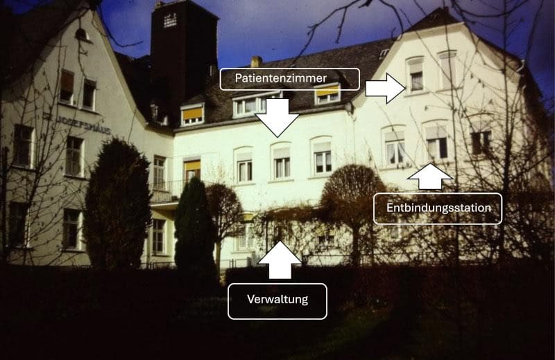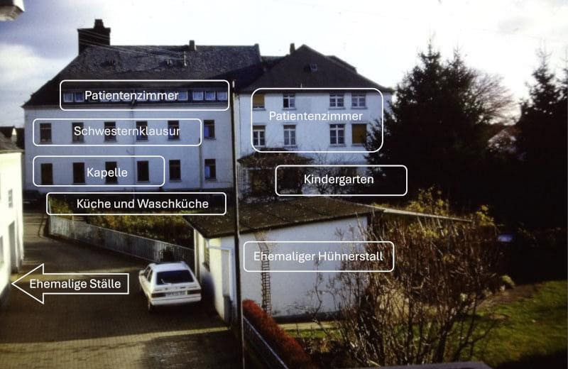 Kurz nachdem der geplante Abriss der Gebäude öffentlich bekannt wurde, machte sich mein Vater Anton Breunig (1919 – 1993) mit seiner Kamera auf, um den Endzustand des St Josefshauses zu dokumentieren. Dabei entstand auch eines der letzten Bilder der gut bekannten Schwester Ludwiga vor ihrer Versetzung in den Ruhestand.