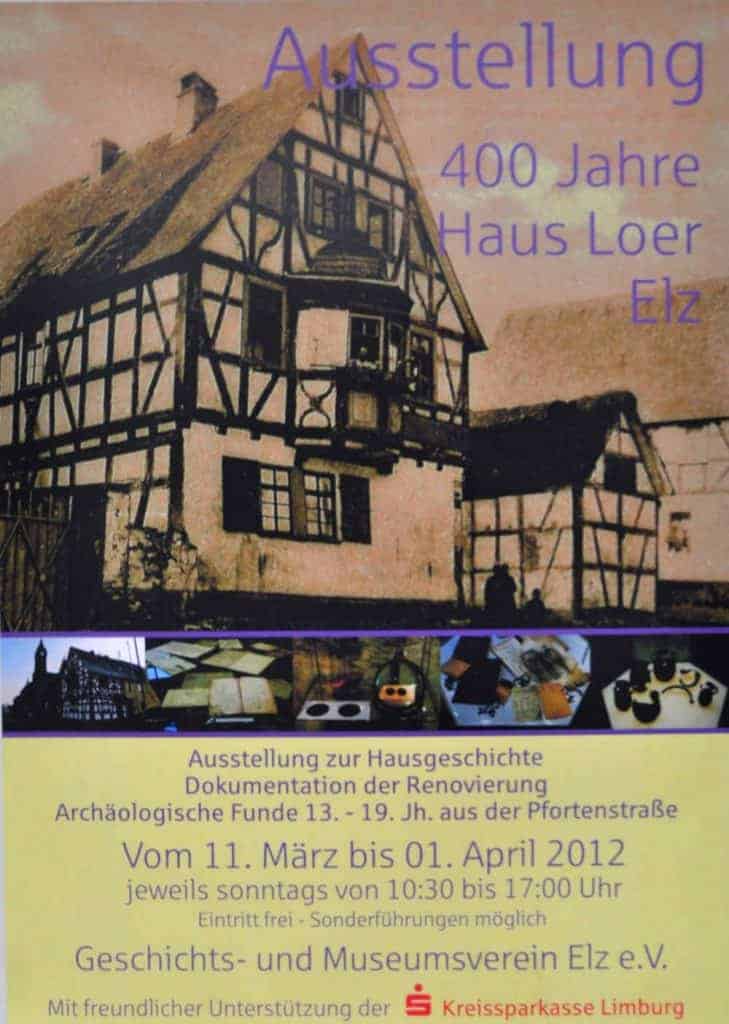 Dem 400. Jubiläum des Hauses Loer widmete der Elzer Geschichts- und Museumsverein eine eigene Ausstellung mit der Dokumentation der Hausgeschichte und der Renovierung sowie archäologischen Funden aus der Pfortenstraße.